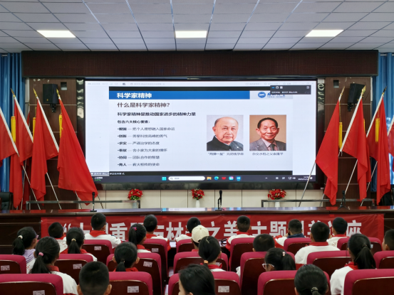 讲座伊始,薛天宇以“科学家精神”为主线,融合理论讲解与典型案例,深入阐释科学家精神的六大内涵。通过一个个生动的故事,他让孩子们看到科学家身上坚韧执着、勇于探索的品质,体会到科学家精神跨越时代的深刻意义,在心中萌发出热爱科学、服务祖国的初心。
