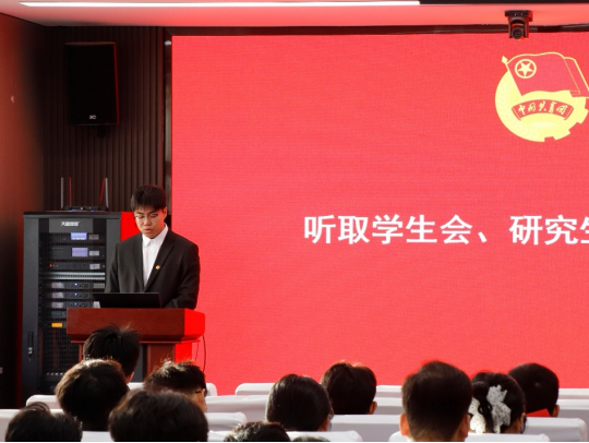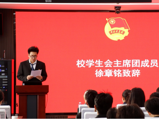 下午14:30,大会在庄严的国歌声中拉开帷幕。徐章铭代表校学生会致辞,对大会的召开表示热烈祝贺,并希望材料学院学生会、研究生会继续发挥桥梁纽带作用,团结协作、锐意进取,与校学生会、研究生会携手并进,共同服务青年成长成才。
