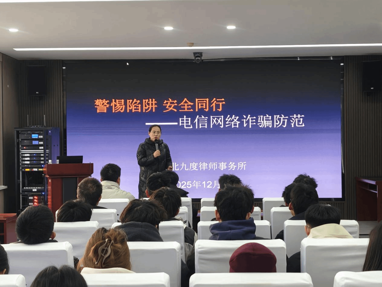 为提升在校学生的反诈意识和法治素养,有效遏制校园电信网络诈骗案件高发态势,12月4日,在国家宪法日这个特殊的日子,材料科学与工程学院特邀河北九度律师事务所曾获“秦皇岛市十佳青年律师”等荣誉称号的高庆萍律师,开展“警惕陷阱 安全同行”电信网络诈骗防范专题讲座,为师生们送上一堂生动实用的法治安全教育课,讲座由辅导员冯晶主持。