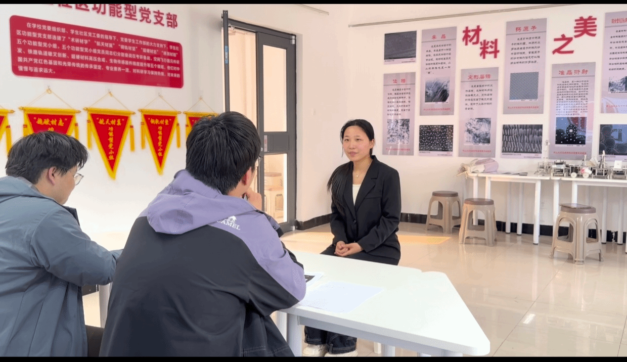 活动选址于学生公寓“一站式”社区工作站,打破了传统就业指导的空间壁垒,让学生足不出户就能享受到专业的求职帮扶。工作站内,“寓见科学”文化墙、“材料之美”主题展、功能型党支部阵地等特色空间,既营造了浓厚的专业学习氛围,也为模拟面试提供了温馨便捷的实践环境,真正实现了“社区即校园、生活即教育”的育人理念。
