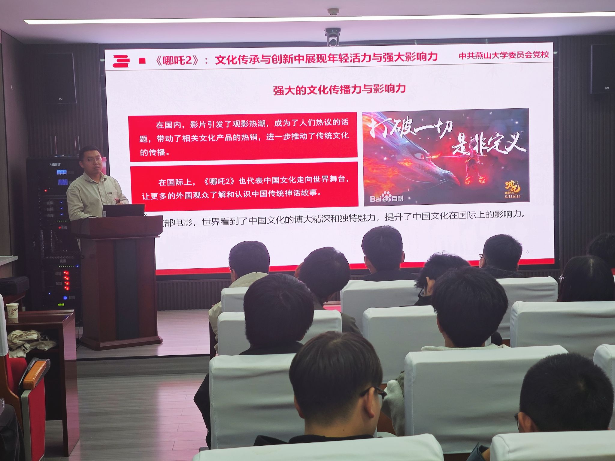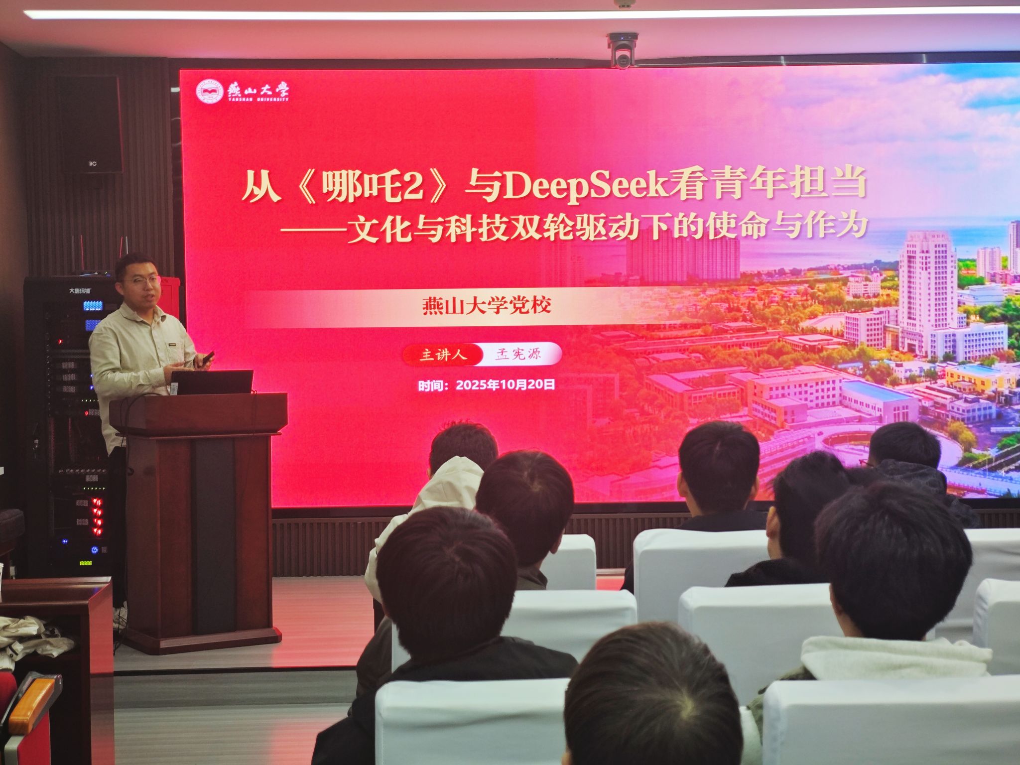 为深入明晰青年一代的担当精神,精准把握文化与科技融合发展的时代脉搏,进一步强化新时代使命意识,10月20日晚19时,材料科学与工程学院分党校邀请信息科学与工程学院孟宪源老师在学院办公楼113会议室,开展《从<哪吒2>与DeepSeek看青年担当-文化与科技双轮驱动下的使命与作为》专题党课,学院发展对象及学生党员共81人参加学习。