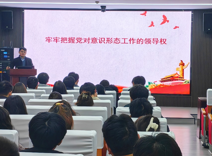 为教育青年学生深刻认识意识形态工作的重要性、明确自身在意识形态安全中的责任使命,10月25日晚19时,材料科学与工程学院分党校邀请马克思主义学院杨新宾老师在材料学院新办公楼113会议室开展《牢牢把握党对意识形态工作的领导权》专题党课,学院34名学生党员和30名发展对象参与学习。