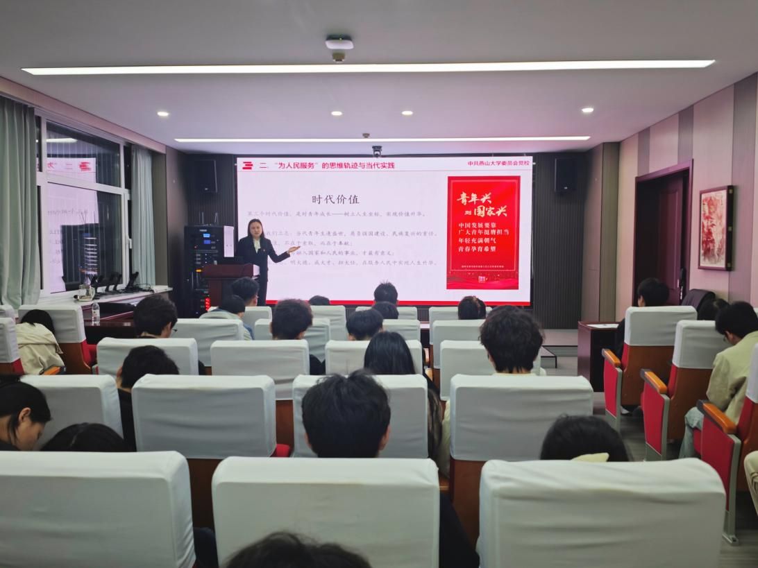 雷霆以为人民服务为主线,从历史叙事与精神解读、思维轨迹与当代实践两个维度展开系统讲授。她深入阐释张思德精神、雷锋精神、王杰精神的时代内涵与价值内核,梳理共产党人全心全意为人民服务的思想脉络与实践历程,并结合新时代榜样人物的先进事迹,引导同学们深刻理解以“为人民服务”为核心的价值体系。雷霆强调,为人民服务从来不是遥远的口号,而是融入日常的行动自觉,是每一天的选择、每一件事的坚守。她紧密结合青年成长规律与校园实际,勉励全体学生党员时刻牢记党员身份,立足专业、立足岗位、立足日常,以点滴实践擦亮党员先锋本色,以青春担当践行时代使命。