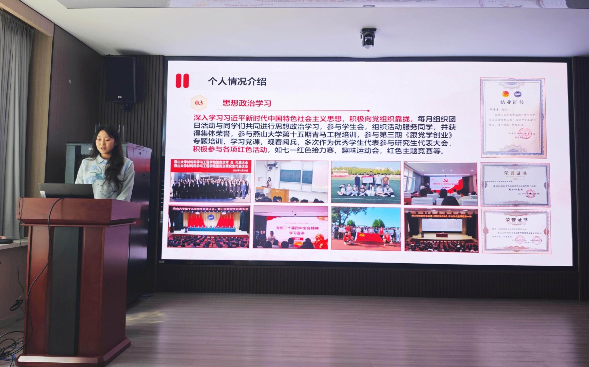 为严格规范学生党员发展流程,全方位考察入党积极分子的政治素养与党性觉悟,4月1日上午,材料科学与工程学院分党校在行政楼113会议室举办研究生入党积极分子风采展示。研究生辅导员冯晶、王妍,以及来自各研究生党支部的24名学生党员代表出席活动并担任评委,活动由辅导员王妍主持。