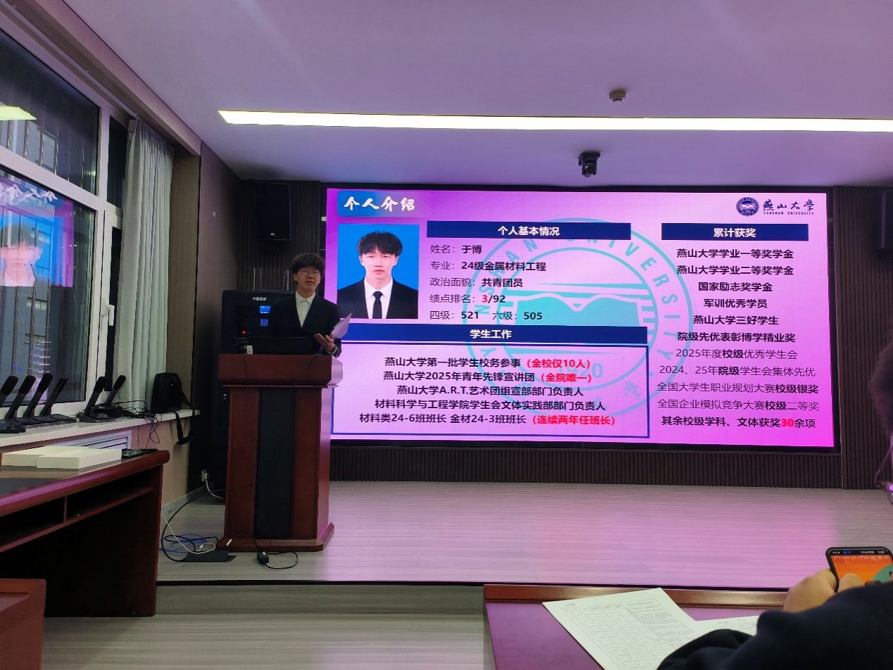 本次风采展示活动既是对入党积极分子阶段性培养成效的集中检阅,也为同学们搭建了一个互学互鉴、交流思想、共同提升的优质平台。材料科学与工程学院分党校将持续深化对本科生入党积极分子的思想引领与实践锻炼,引导同学们在夯实学业根基、勇担时代使命、服务集体同学中锤炼党性、增长才干,着力培养政治过硬、本领高强、甘于奉献的新时代材料领域后备人才,切实发挥党组织在青年学生思想政治成长中的领航作用。