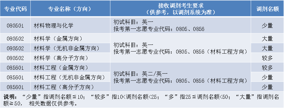 申请调剂材料学(080502)和材料工程(085601)专业的考生须选择相应的专业方向。